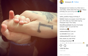 He paid a gushing tribute to his little boy on Instagram, showing a picture of the tiny one-year-old’s hand clutching his.