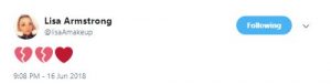 The Strictly makeup artist reacted on Twitter with a series of heartbroken emojis when the news broke.