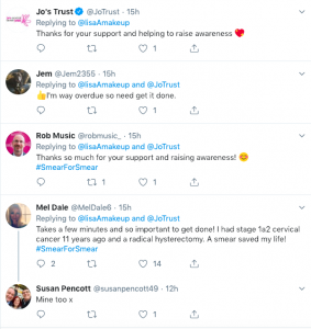 Others shared how important it really is, saying: “Takes a few minutes and so important to get done! I had stage 1a2 cervical cancer 11 years ago and a radical hysterectomy. A smear saved my life! #SmearForSmear.”