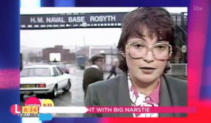 During her chat with the grime MC, the photo appears on the big screen as Lorraine tells them: “I ended up working for TV AM”.