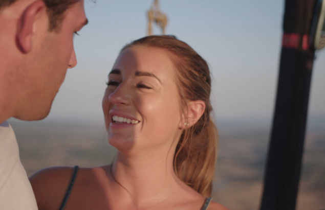 When they arrive on the date, a giant hot air balloon awaits them, which prompts further excitement amongst the giddy pair.