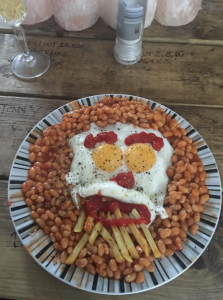 On Thursday, the page shared a meal made by “Mike L,” which featured A LOT of baked beans, two fried eggs, chips and ketchup.