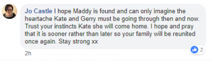 One in Queensland, Australia, said: “I hope Maddie is found and can only imagine the heartache Kate and Gerry must be going through, then and now.