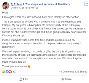 PJ Robins took to social media when just two friends turned up to celebrate his daughter Remi’s birthday at a play centre in Abertillery, Wales.