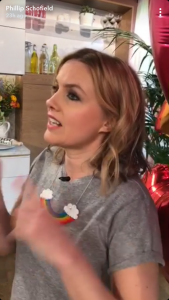 The This Morning team were celebrating early with their presenter, as she’ll be marking the big day on Saturday with her husband, Dan Baldwin and their three children, Harry, Belle and Chester.