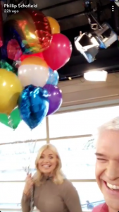 Phillip Schofield took to his Snapchat to share behind-the-scenes secrets and footage of the party, two days ahead of his co-host turning 37 on Saturday.