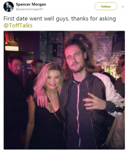 Spencer and Toff have been friends for a long time and, just to go along with the joke, Spencer posted a tweet with a picture of the couple that said: “First date went well guys. Thanks for asking.”