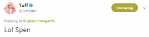 To which Toff replied: Lol Spen