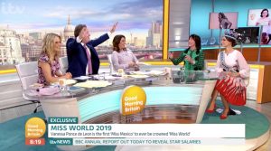 Discussing the changing face of beauty contests, Piers welcomed Julia and current Miss World Vanessa Ponce.