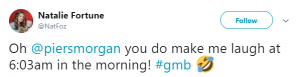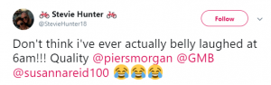 One person tweeted: “Don’t think I’ve ever actually belly laughed at 6am!!! Quality.”