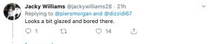 One follower agreed with Piers, saying: “Looks a bit glazed and bored there.”