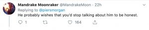 Some of Piers’ 6.8million followers responded to his sarcasm.