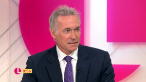 The 39-year-old, currently standing in as host on ITV’s Lorraine, is expecting her first child with husband Frank next month.