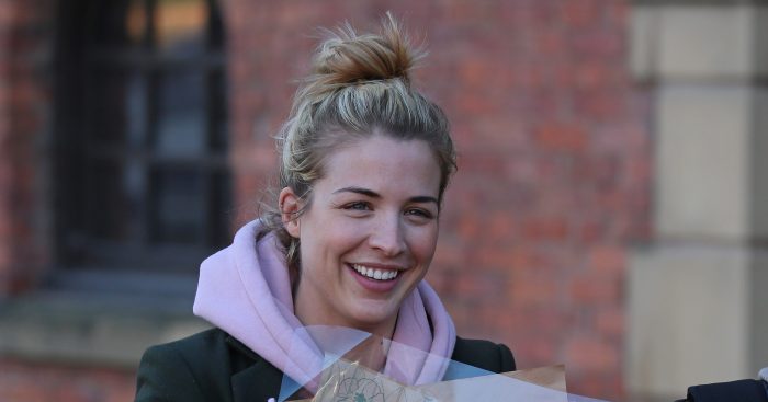 Sharing a video of a sheepish-looking Gemma walking through the door, the 41-year-old said: “Look what the cat dragged in. Good morning!”