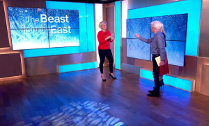 Soldiering on with her report detailing how the Siberian snowstorm will impact the UK, Becky clicked her fingers instead to prompt the map’s changes.