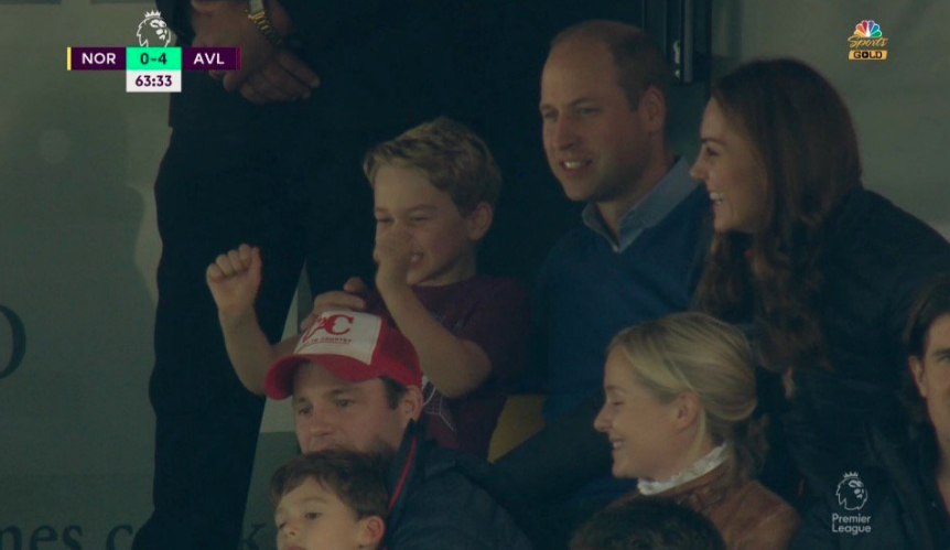 The six-year-old, sister Charlotte and parents Prince William and Kate Middleton were all in attendance at Norwich City’s ground as the East Anglian side took a Premier League thumping from Aston Villa.