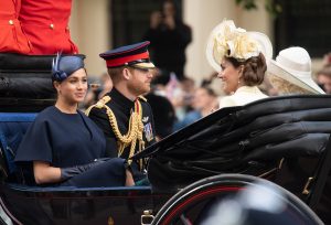 Meghan travelled to the event in a carriage with husband Prince Harry, Kate, Duchess of Cambridge and Camilla, Duchess of Cornwall.