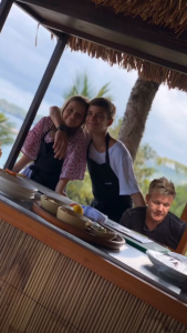 The pic, shared to his Instagram story, showed the siblings in an outdoor kitchen showing off their culinary skills.