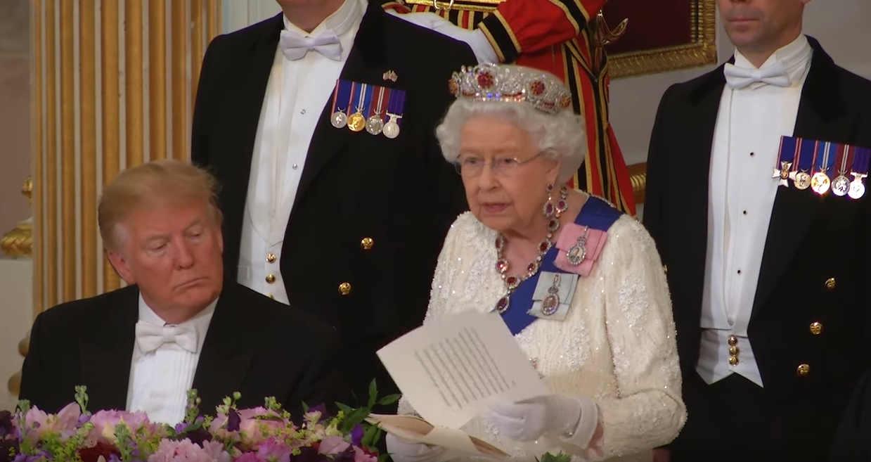 As the Queen spoke about the relationship the UK and America share, Trump can be seen repeatedly closing his eyes.