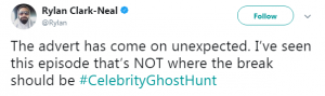 Rylan added: “The advert has come on unexpected. I’ve seen this episode that’s NOT where the break should be.”