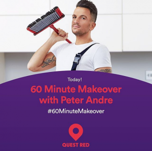 He’s also starring in TV show, 60 Minute Makeover, on Quest Red, which starts tonight– busy boy!