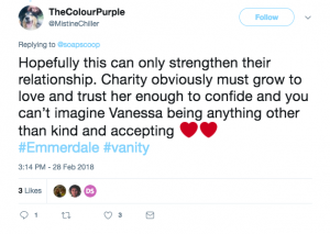The devoted Vanity fans are convinced this new storyline will just bring the women closer, with one fan writing: “You can’t imagine Vanessa being anything other than kind and accepting.”