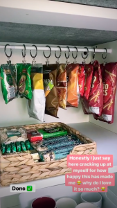 But even she was left in stitches today after coming up with a hack to restore some order to her messy snack cupboard.