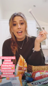 Showing off her finished cupboard, Stacey gave herself a little cheer and declared: “Snack cupboard, complete!”