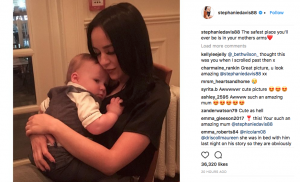 She posted the picture of herself cradling one-year-old son Caben, which drew 34,000 views within a couple hours.