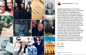 “SO GUTTED and SO SORRY to those I missed. This show has taken its toll on me and the subject matter was deeply affecting.”