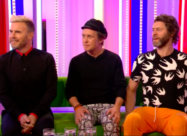 Speaking to presenters Matt Baker and Alex Jones, the three remaining members of the original boyband, Gary Barlow, Howard Donald and Mark Owen, were talking about their new stage musical The Band, which is touring the UK this spring.