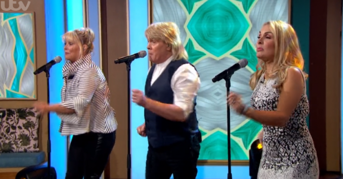 The band, made up of Buck’s Fizz singers Cheryl Baker, Mike Nolan and Shelley Preston, appeared on the show to promote their new tour, 80s Invasion.