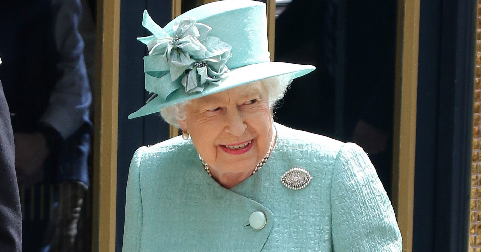 The 93-year-old looked stunning in a teal coat, matching hat and a black handbag as she waved to crowds while arriving at the store.