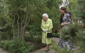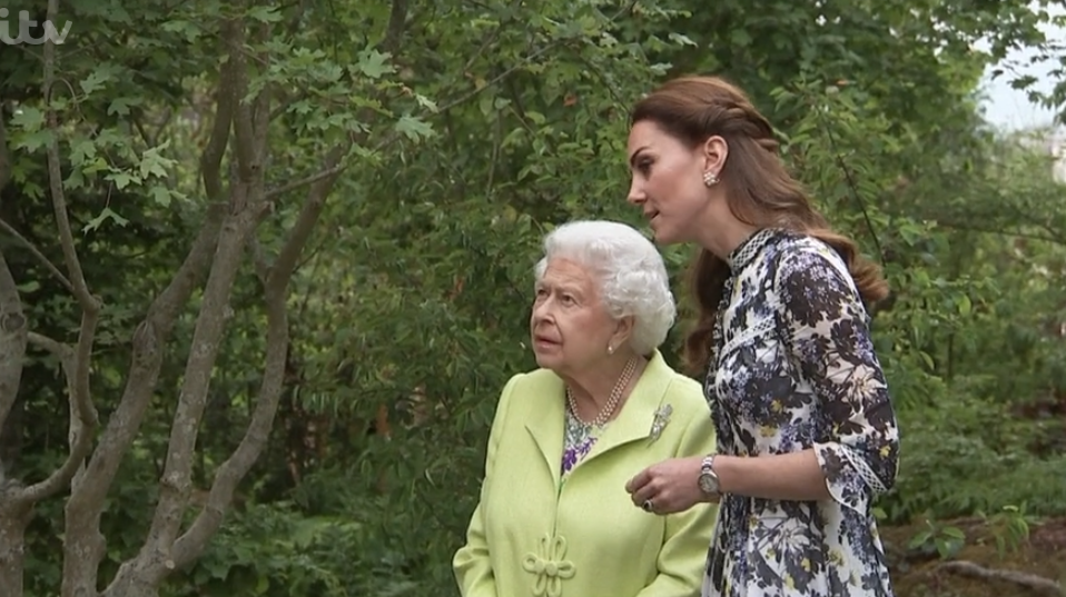 Her Majesty visited Kate’s woodland garden at the Chelsea Flower Show on Monday alongside her grandson, Prince William.