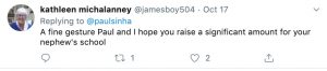 One wrote: “A Fine gesture Paul and I hope you raise a significant for your nephew’s school.”