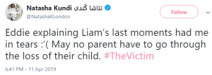 A fourth said: “Eddie explaining Liam’s last moments had me in tears :'( May no parent have to go through the loss of their child.”