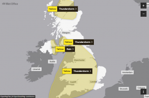 The Met Office has said there is a small chance that homes and businesses could be “flooded quickly” with damage to some buildings from floodwater, lightning strikes, hail or strong winds.