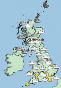 “Further north, there’ll be a mixture of sunny spells and blustery showers, these possibly turning wintry over the hills.