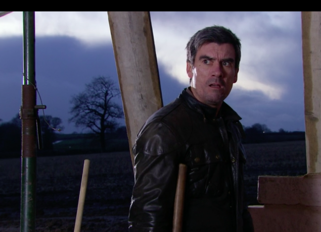 But shortly after that, the scene jumped to dusk as Cain took a sledgehammer to what remained of the Dingles’ wall.