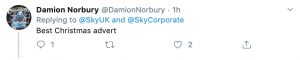 Broadcaster and broadband supplier Sky stunned fans when it dropped its Christmas advert today (28.11.19).