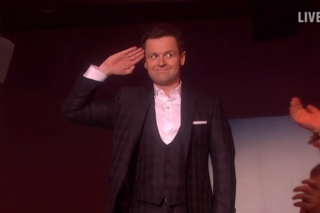The studio audience of Saturday Night Takeaway took to their feet to show their support to Declan Donnelly as he took to the stage – alone.