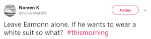 One person wrote: “Leave Eamonn alone. If he wants to wear a white suit so what?”