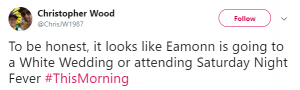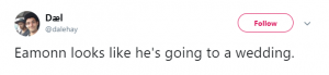 A third added: “Eamonn looks like he’s going to a wedding.”
