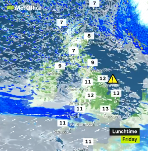 Saturday will be the peak in the miserable weather though, as there are currently no weather warnings in place for Sunday, which is forecast to be blustery but sunny.