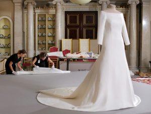 Meghan looks overjoyed to see the Givenchy wedding gown again and says: “Somewhere in here, there’s a piece… Did you see it? The piece of blue fabric that’s stitched inside?”