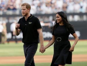 While the Red Sox presented Meghan with a red babygro for Archie, Meghan was particularly delighted with New York Yankee’s gift of a baby sized baseball shirt branded ‘ARCHIE 19’ on the back.