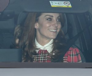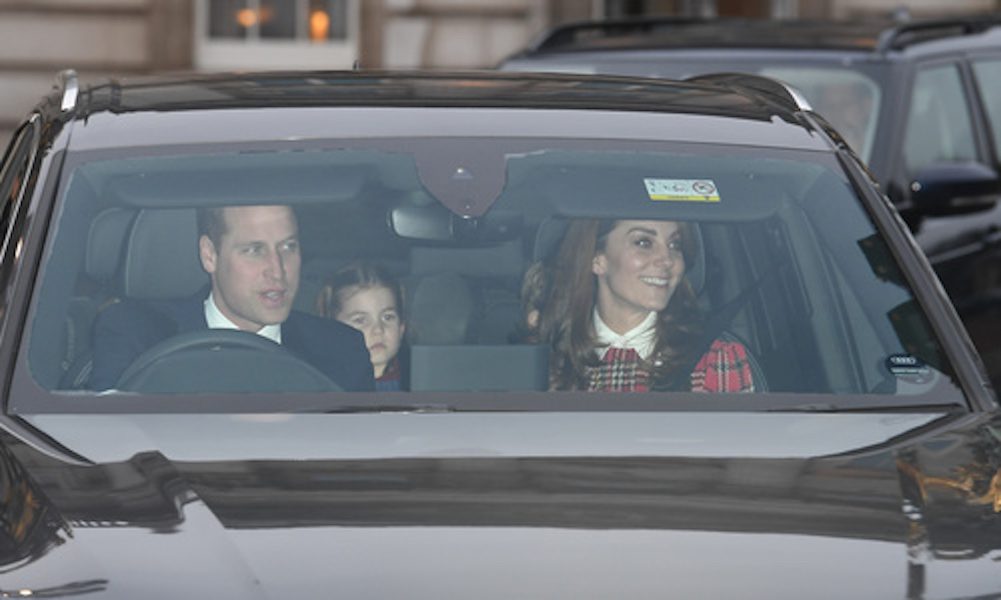 The Duke and Duchess of Cambridge and their three children drove away from Buckingham Palace in one car this afternoon, having attended the Queen’s annual Christmas lunch with a host of other royals.