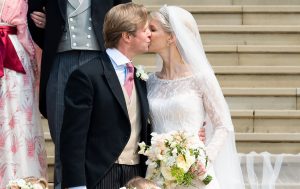 Lady Gabriella and her new husband Thomas kissed on the steps of St George’s Chapel following the ceremony, and posed for photos.