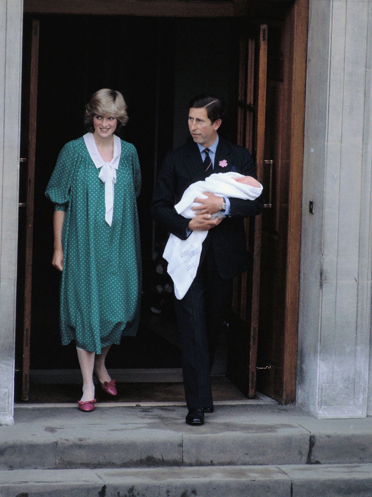 Hours after giving birth, Diana and Charles posed on the steps outside the Lindo Wing at St Mary’s Hospital in London with baby William.
