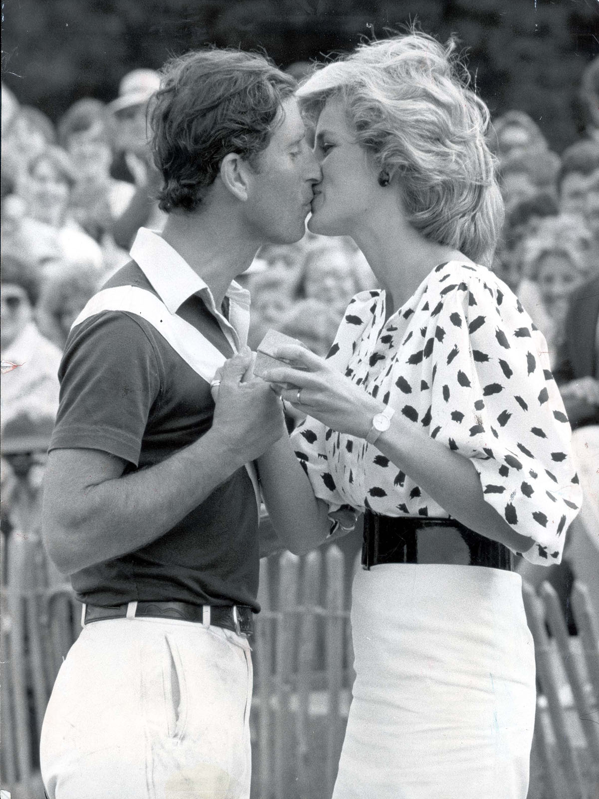 During a polo match in 1985, the couple kissed as she presented him with a prize at polo in Cirencester.